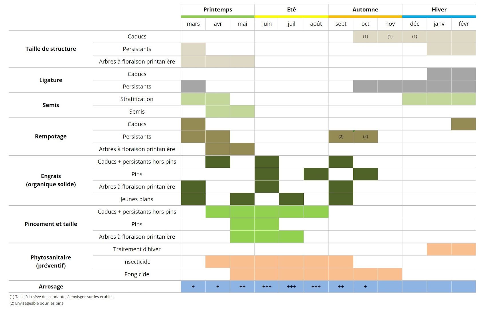 Le calendrier proposé correspond à un climat semi-océanique européen (Ile de France).