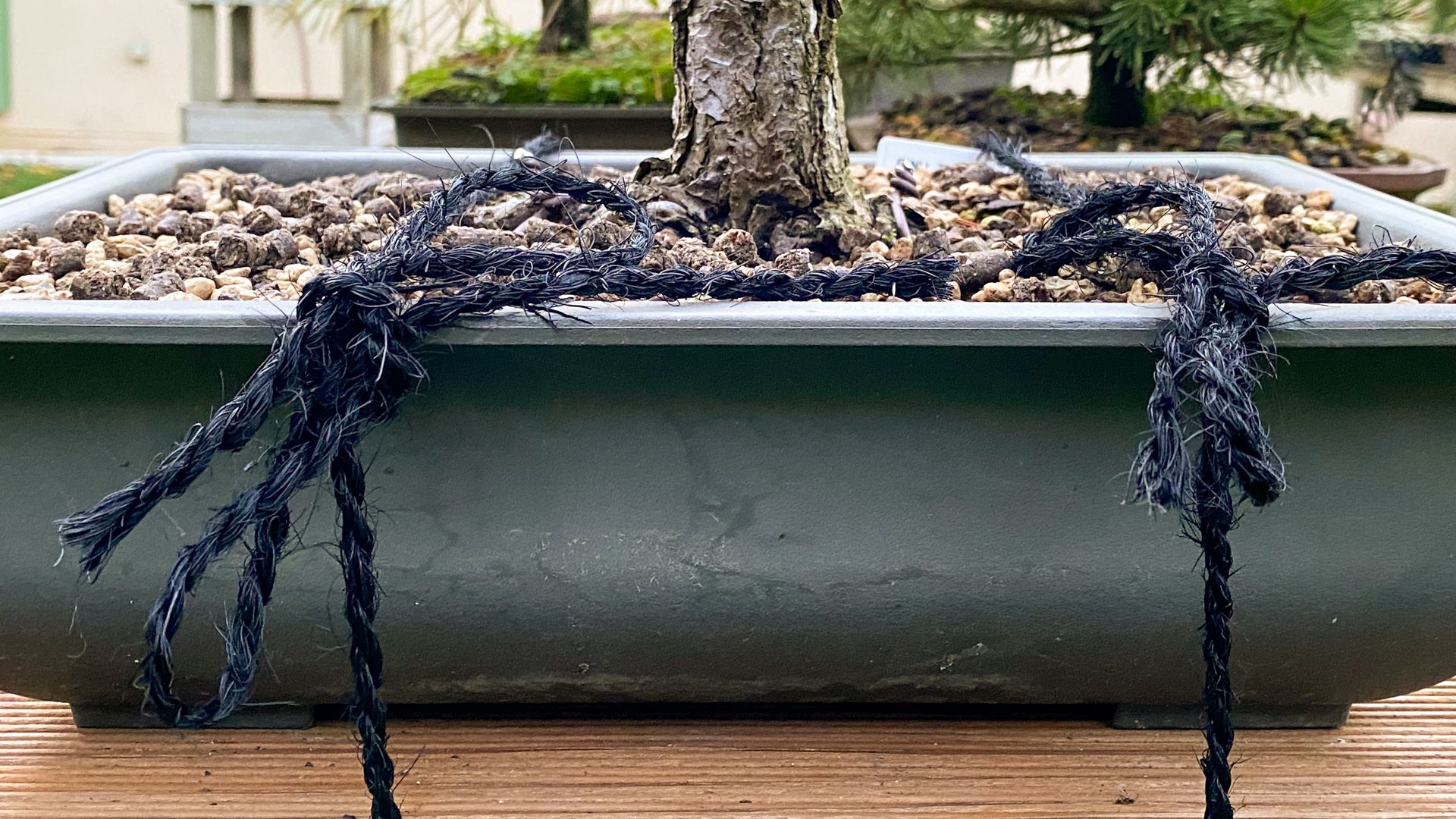 La solution consiste à attacher les pots à leur table à l’aide de liens ne se relâchant pas lorsqu’ils sont moullés.